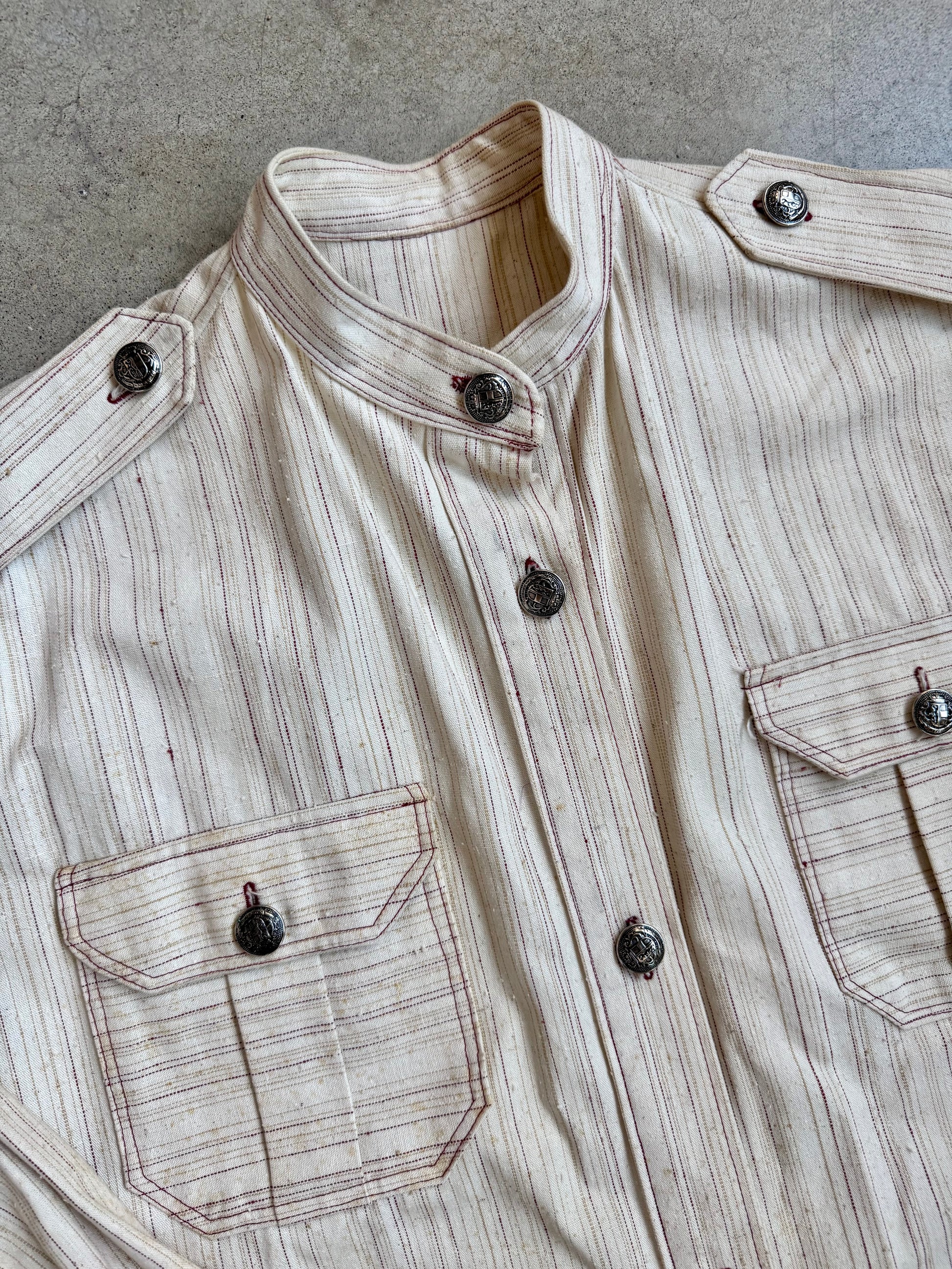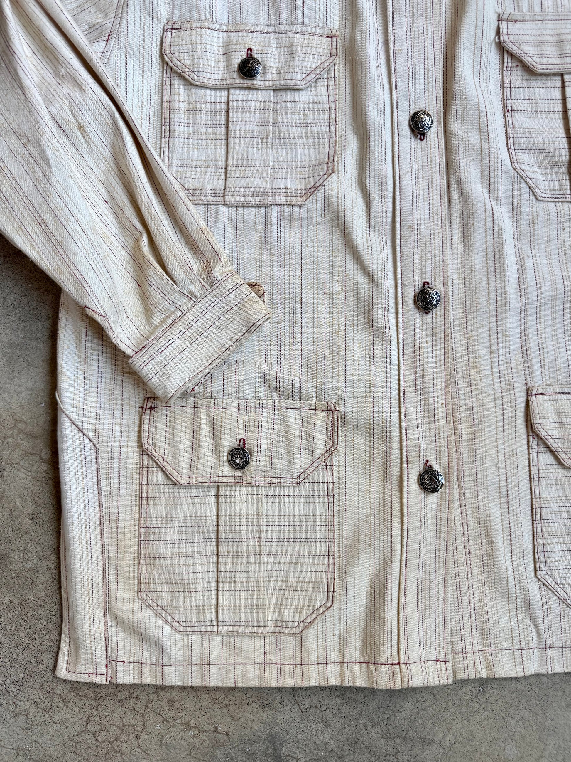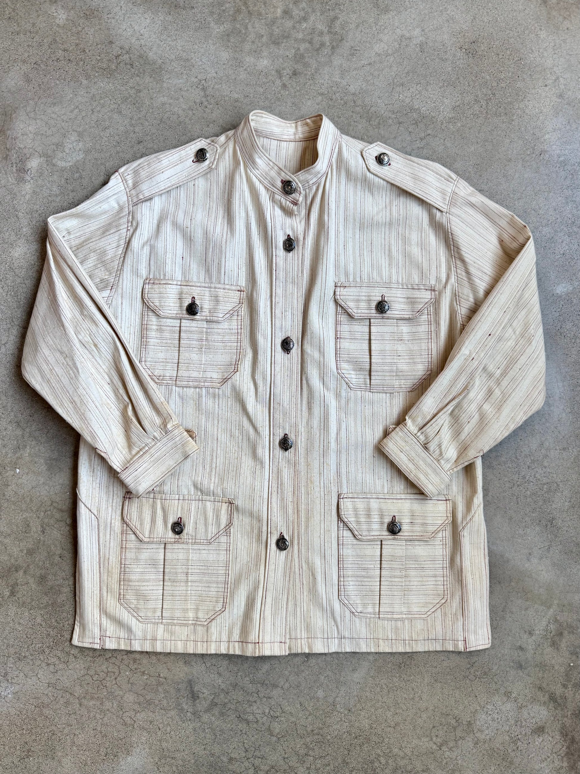 Vintage 1960s/70s Cream & Red Striped Canvas French-Style Safari Jacket.