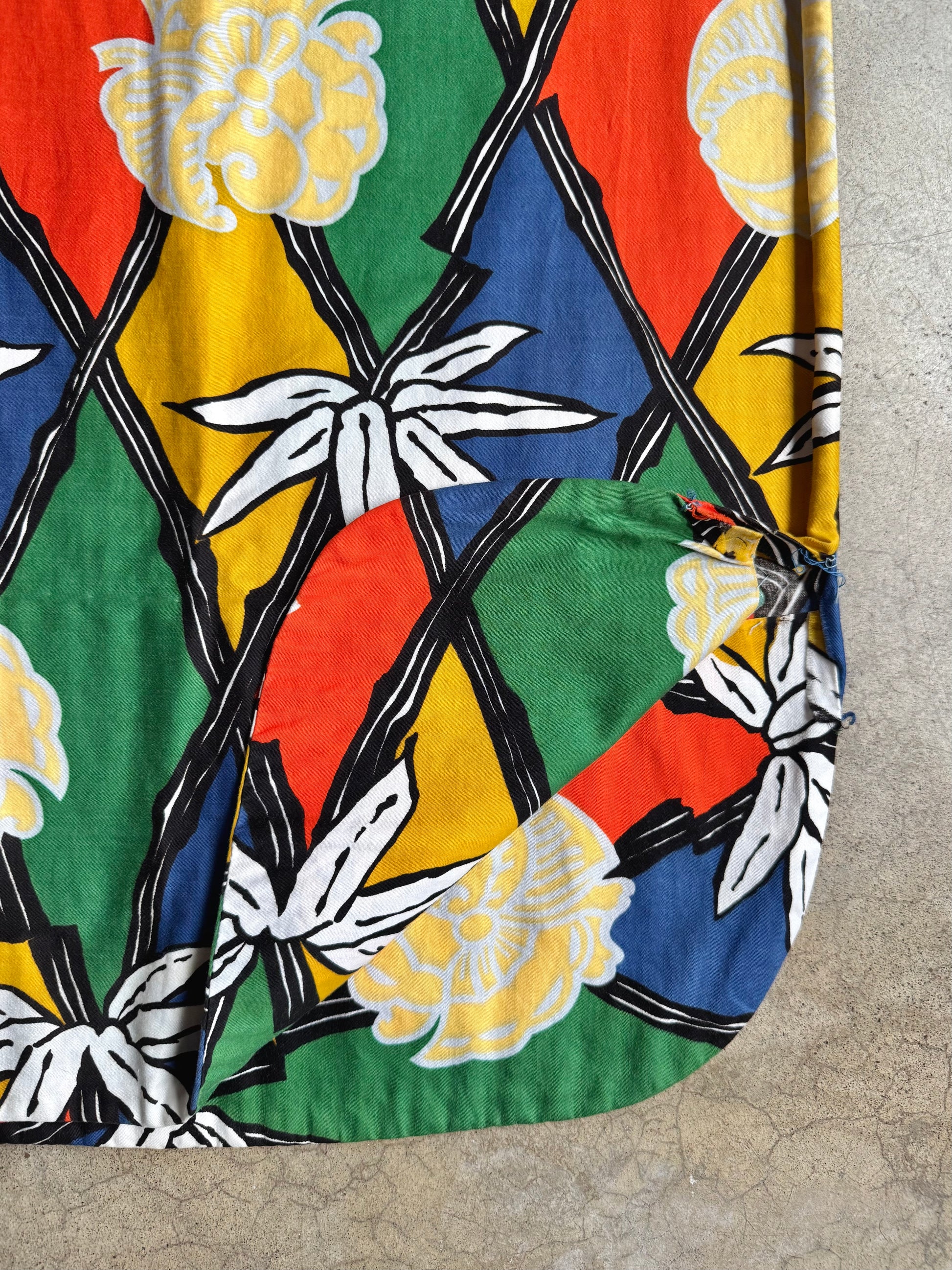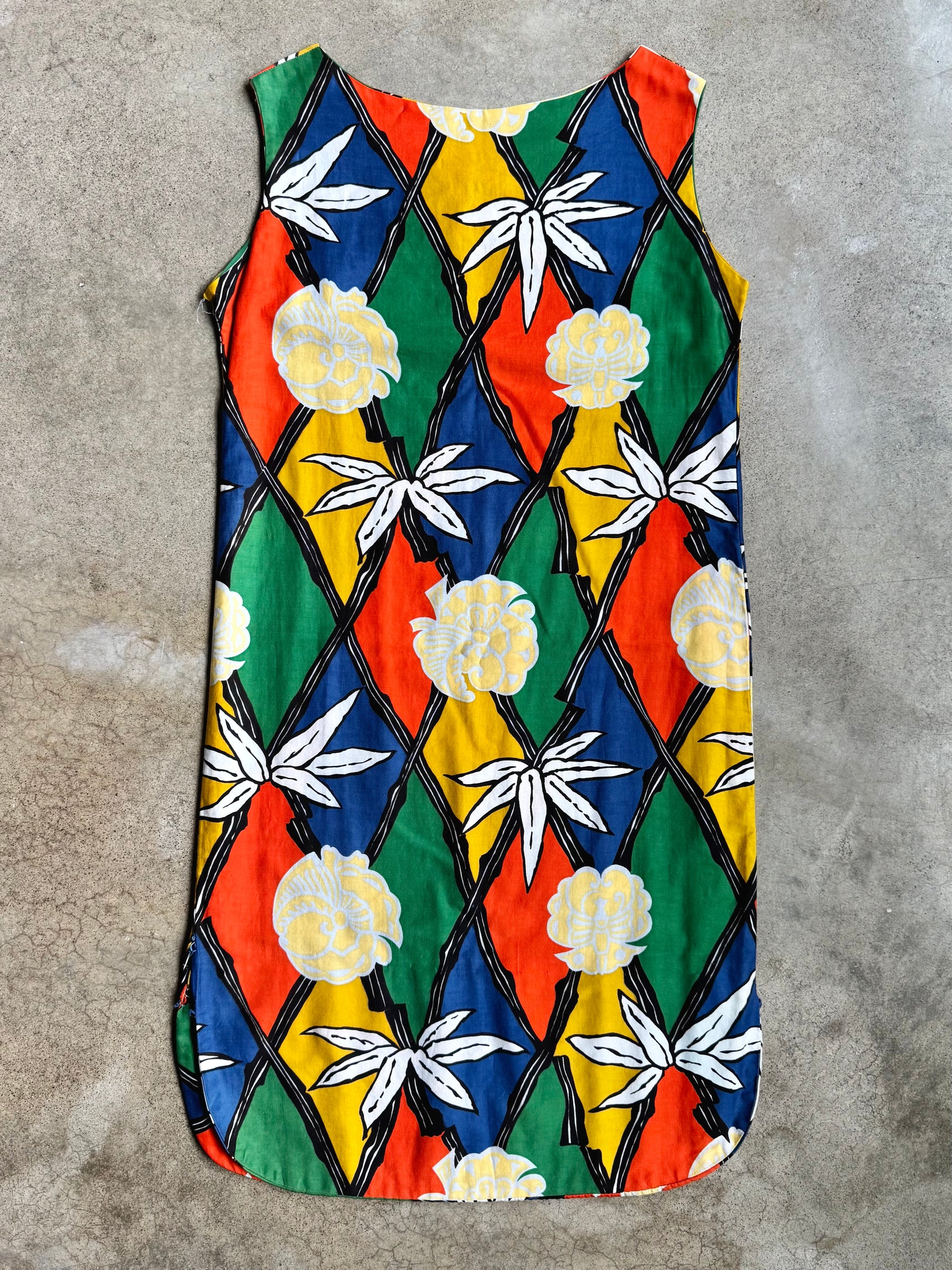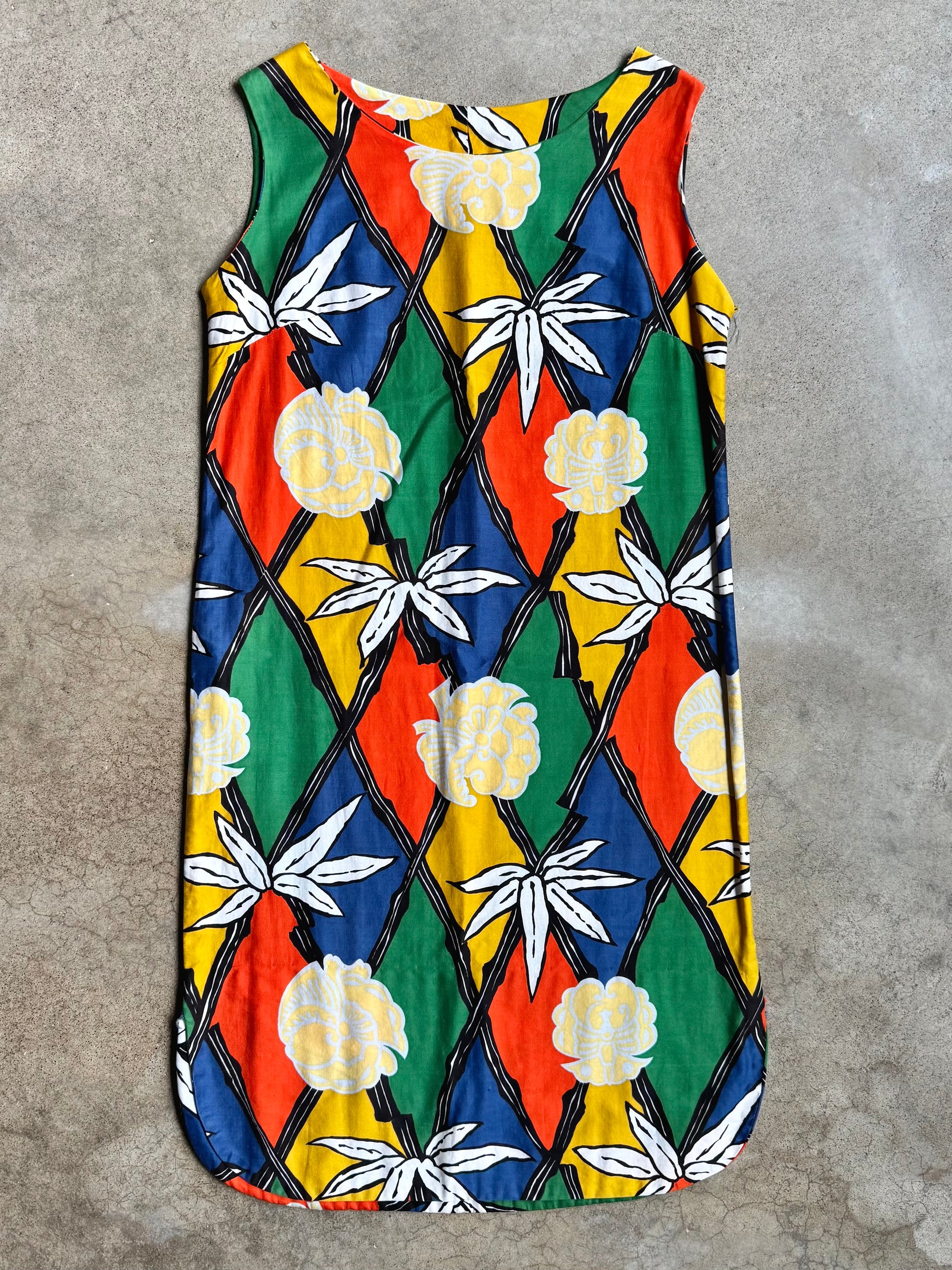 Vintage 1960s Hale Aloha Custom-Made Bright Hawaiian Printed Shift Dress.