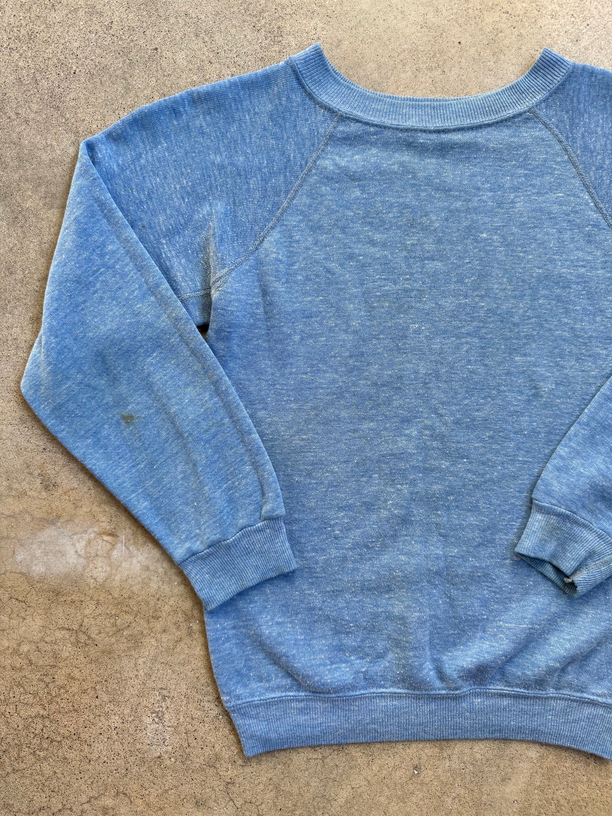 Vintage 1980s Heather Blue Worn Raglan Sweatshirt | XS