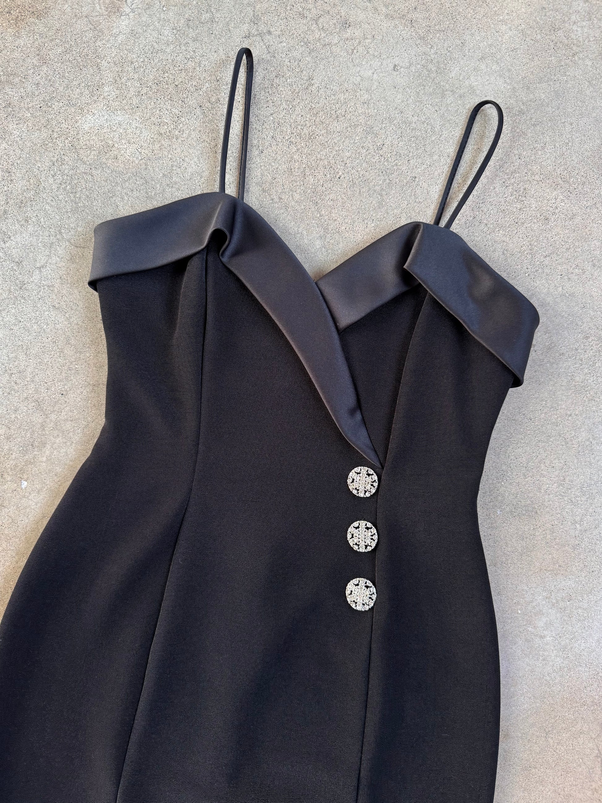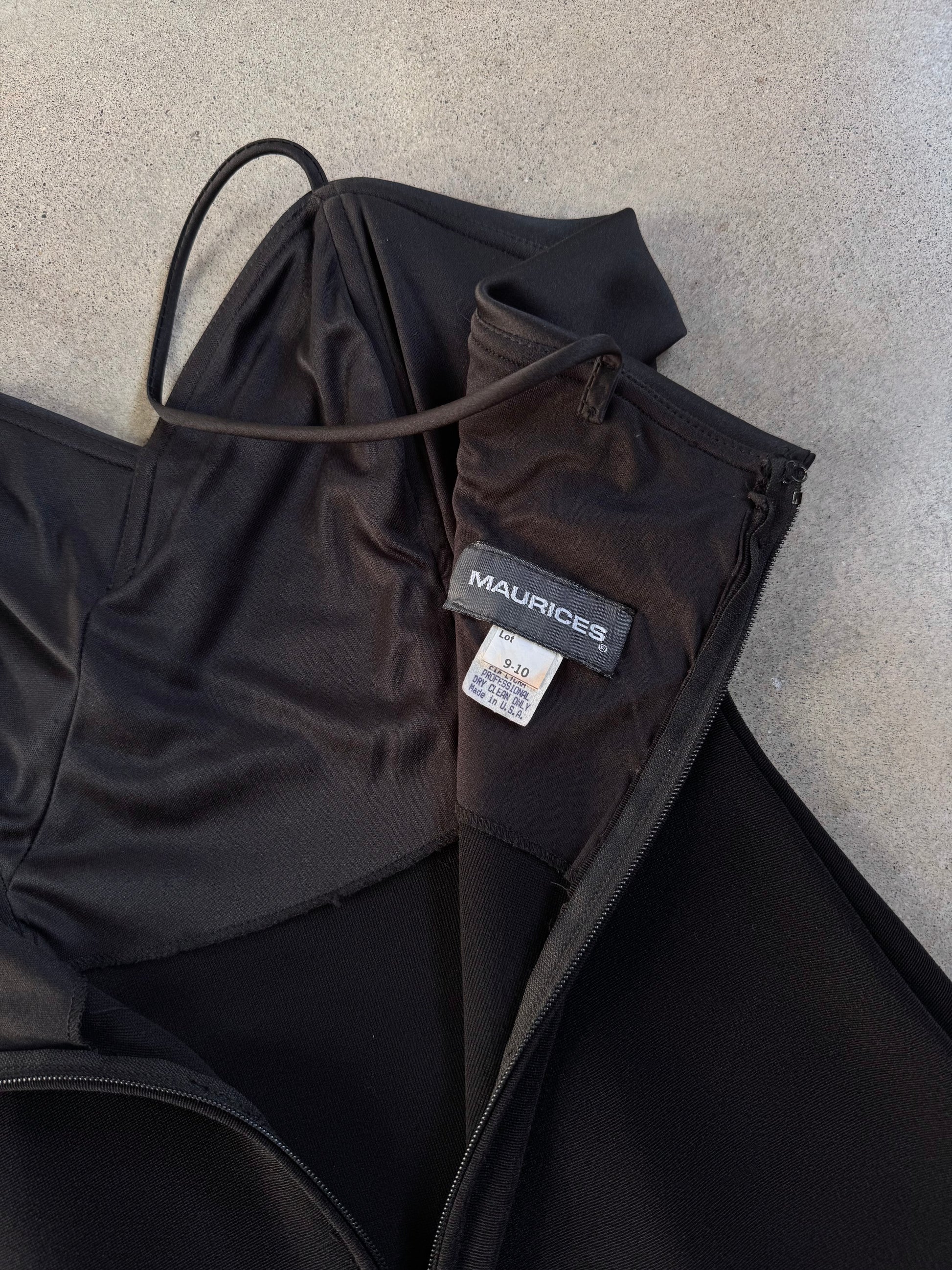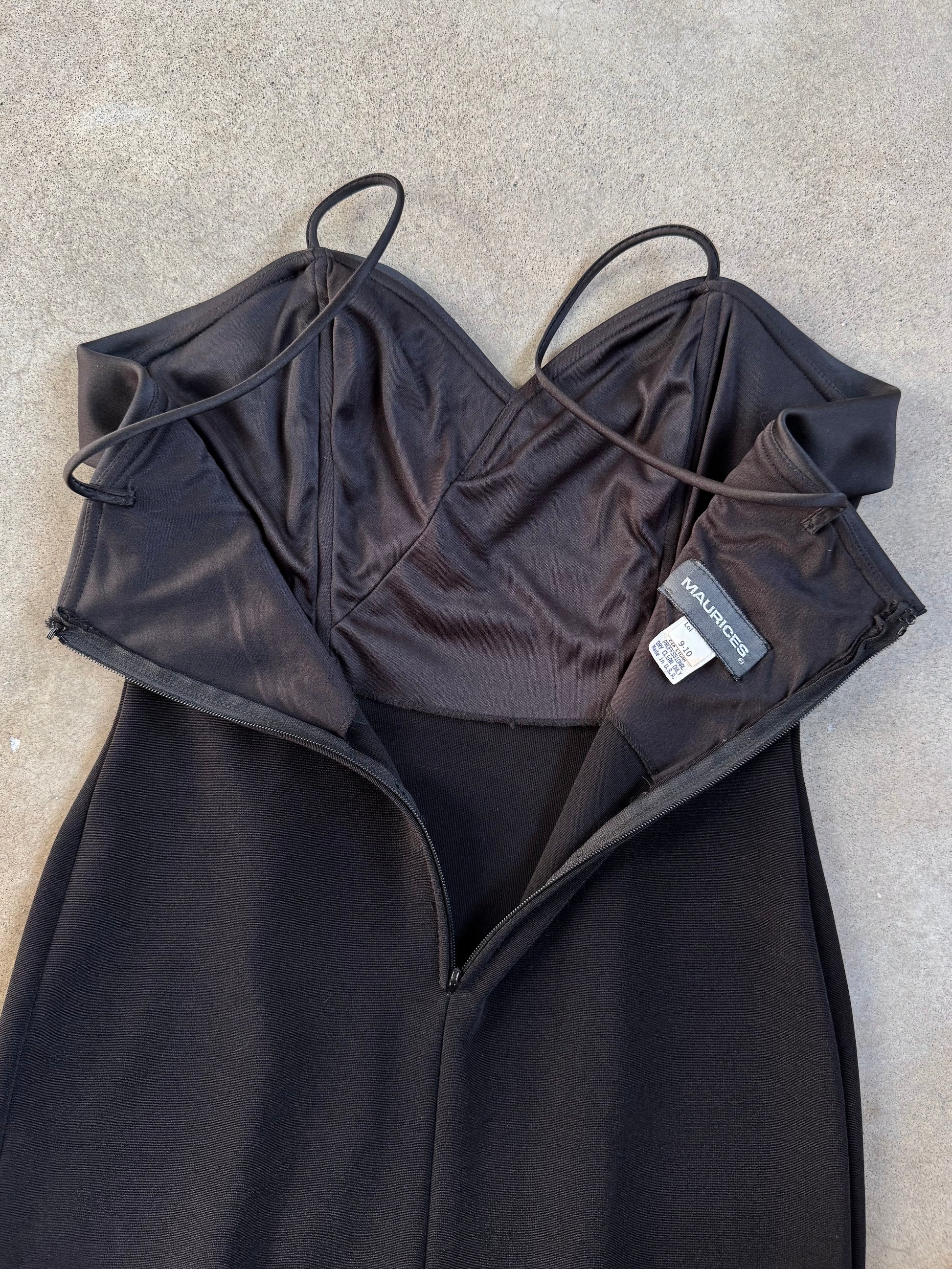 Vintage 1980s Maurices Black Formal Mini Dress | S/M