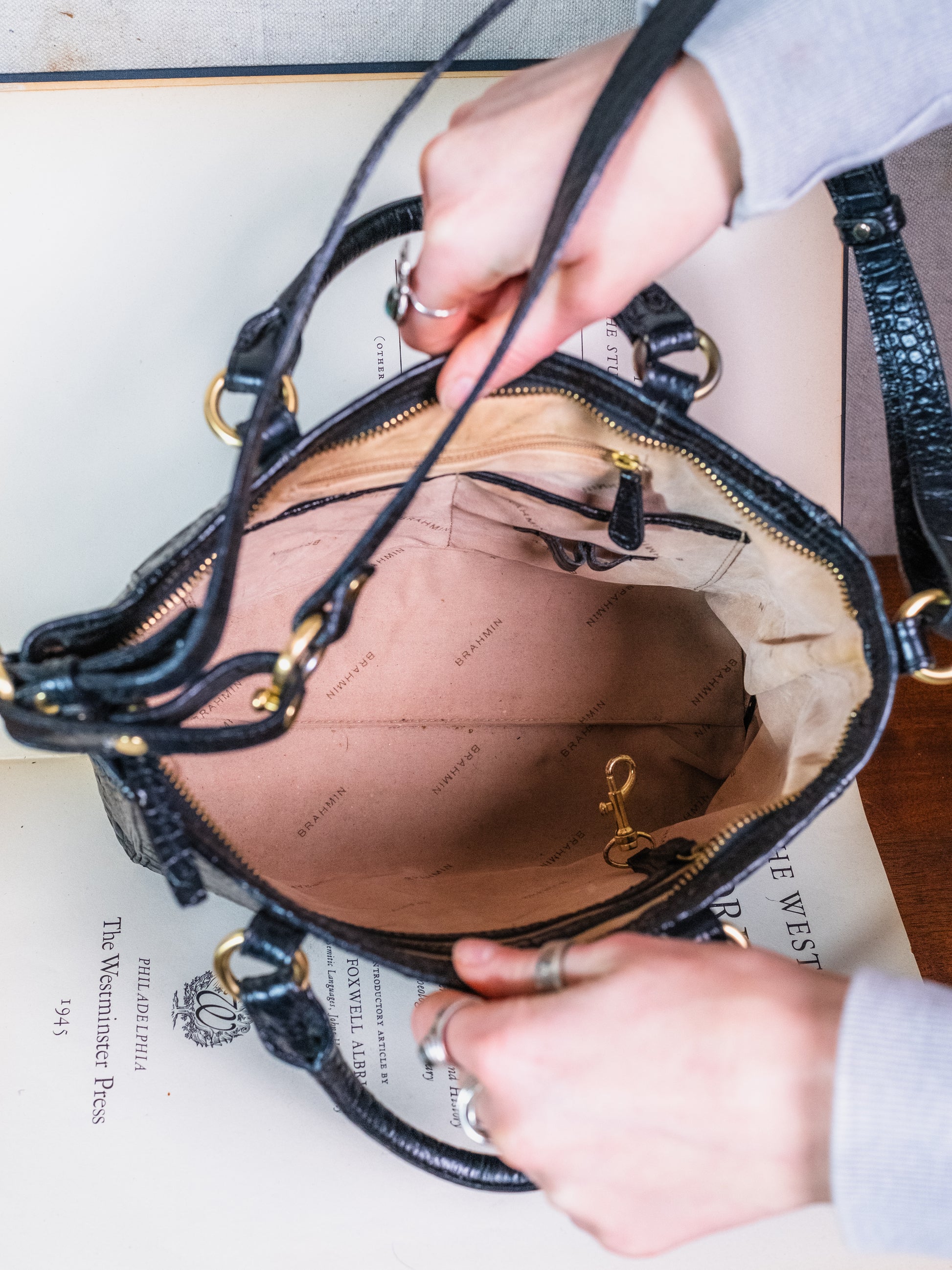 Brahmin Mini Arno Tote Black Croc Embossed Leather Bag