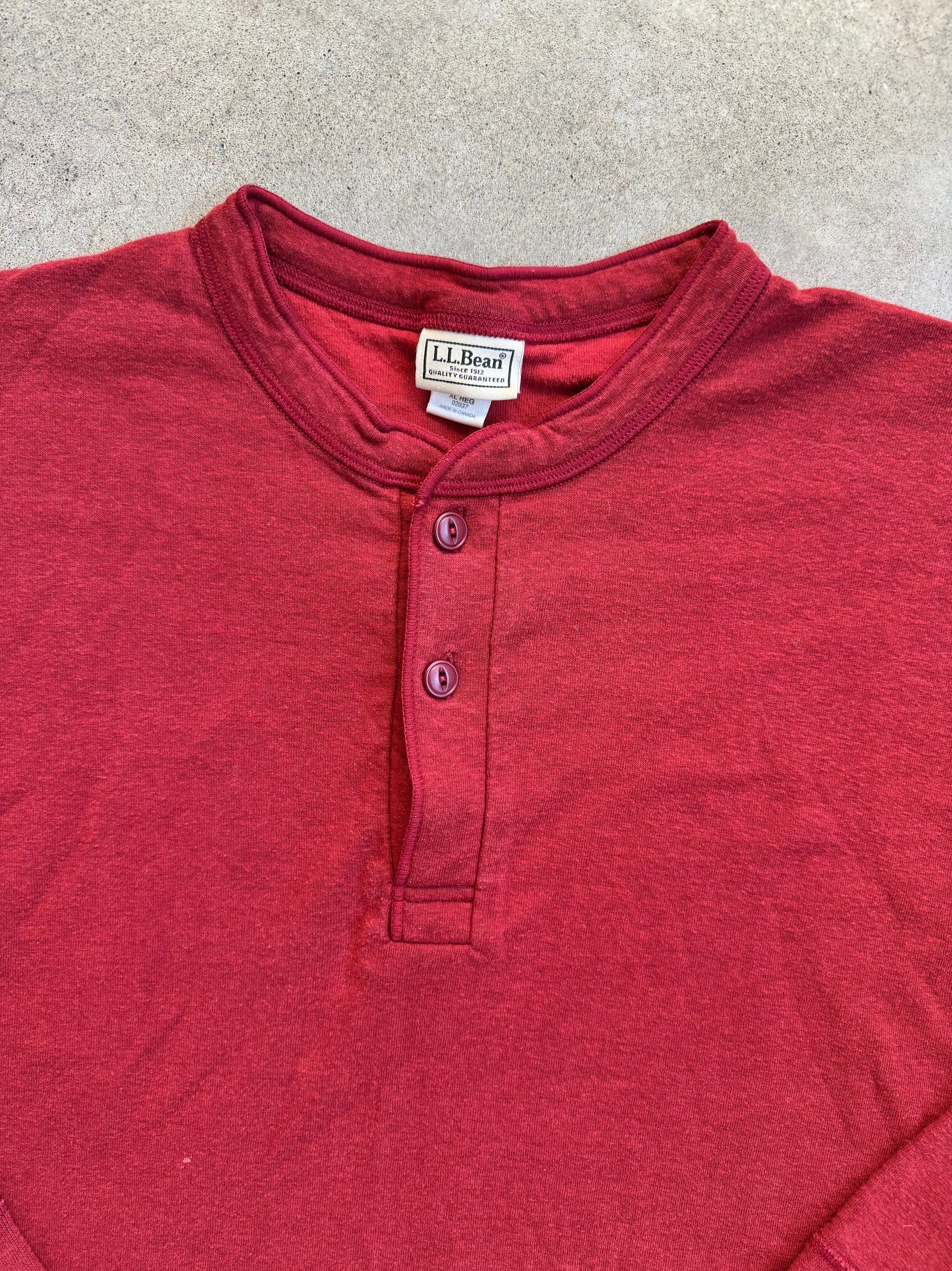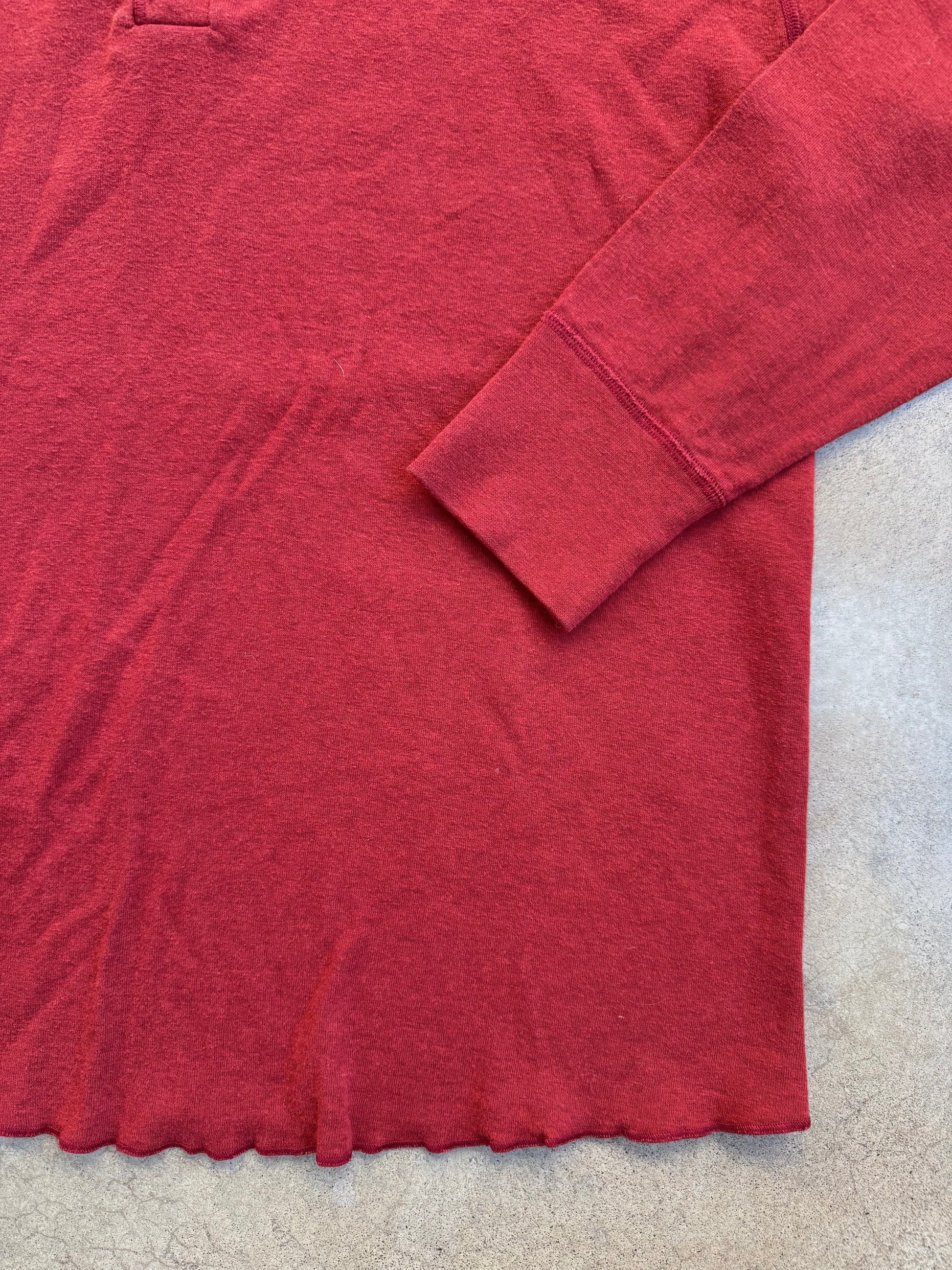 Vintage L.L. Bean River Drivers Red Wool-Blend Long Sleeve Henley Shirt.