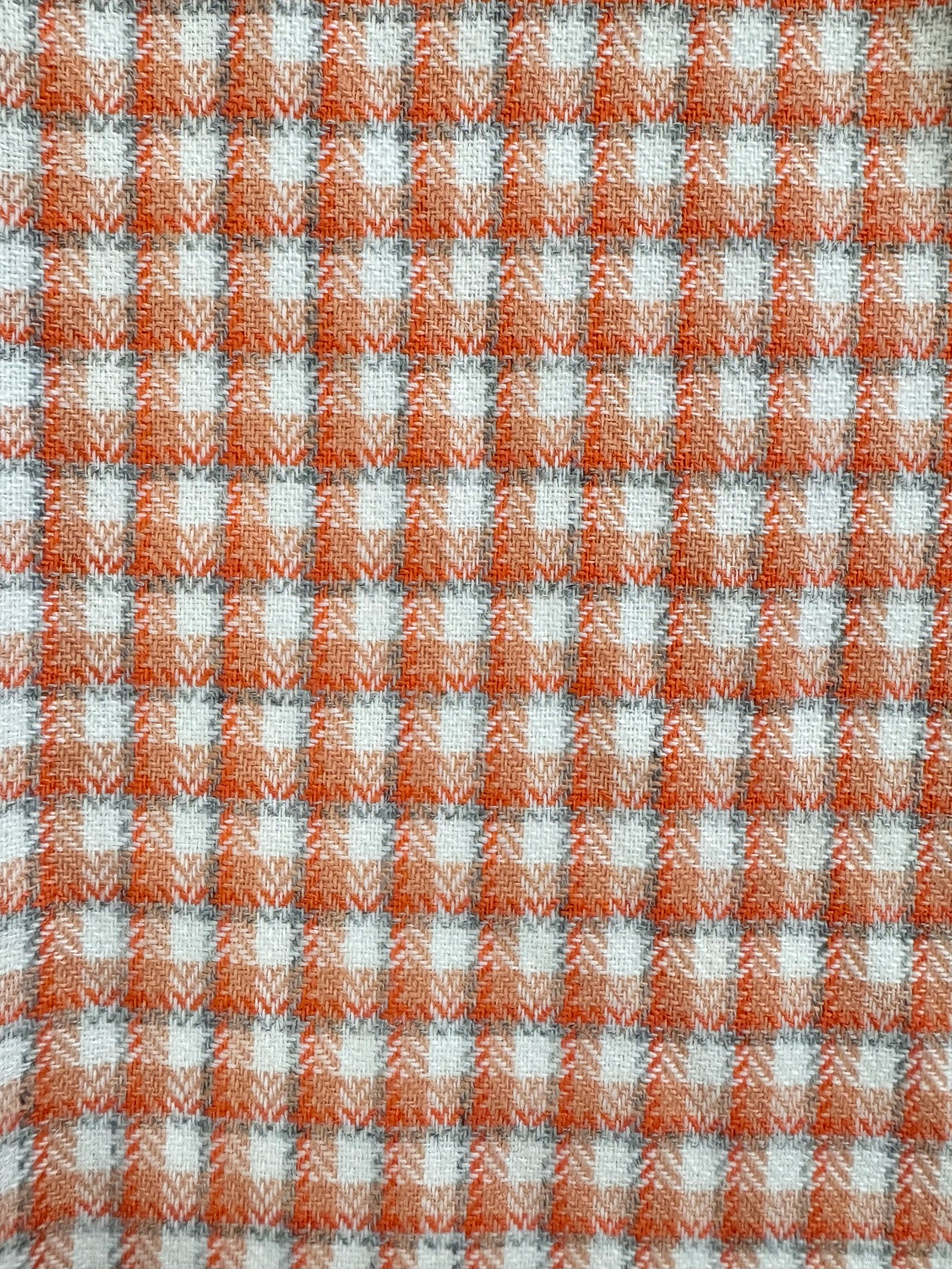 Vintage 1970s Orange & White Plaid High-Waisted Mini Circle Skirt. Features a zipper & double button closure at back.